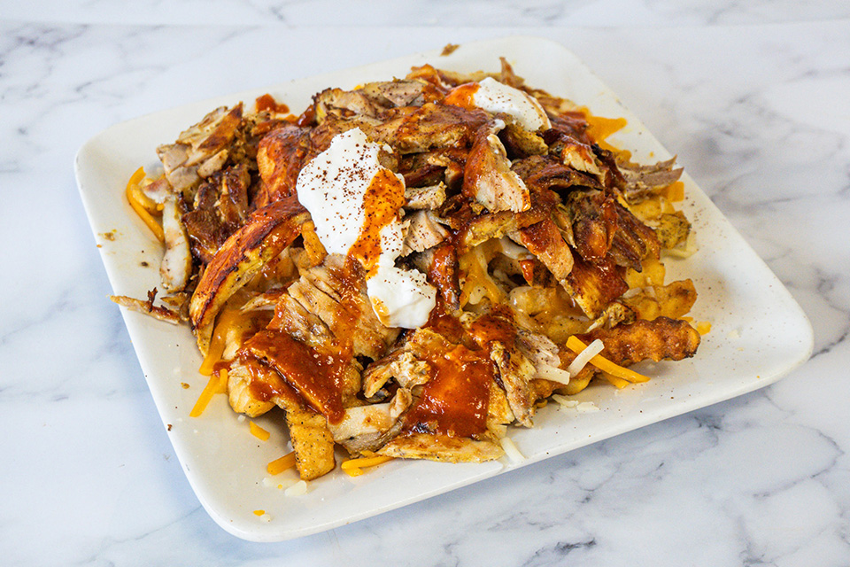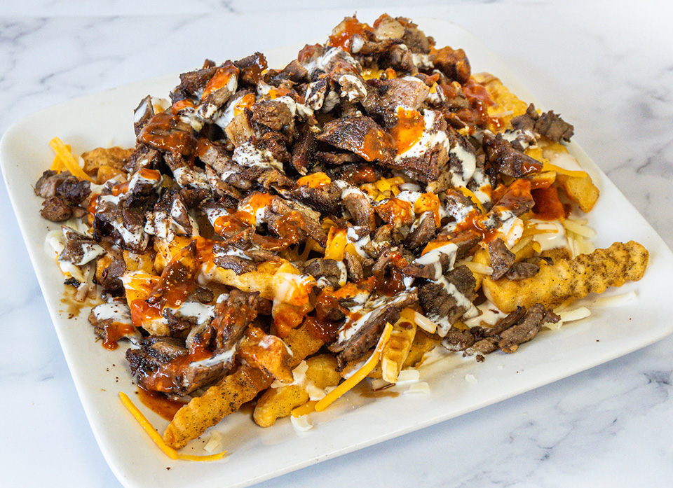 Topped with our traditional garlic toum sauce, Azmi Sauce, cheddar cheese, and hot sauce upon request.