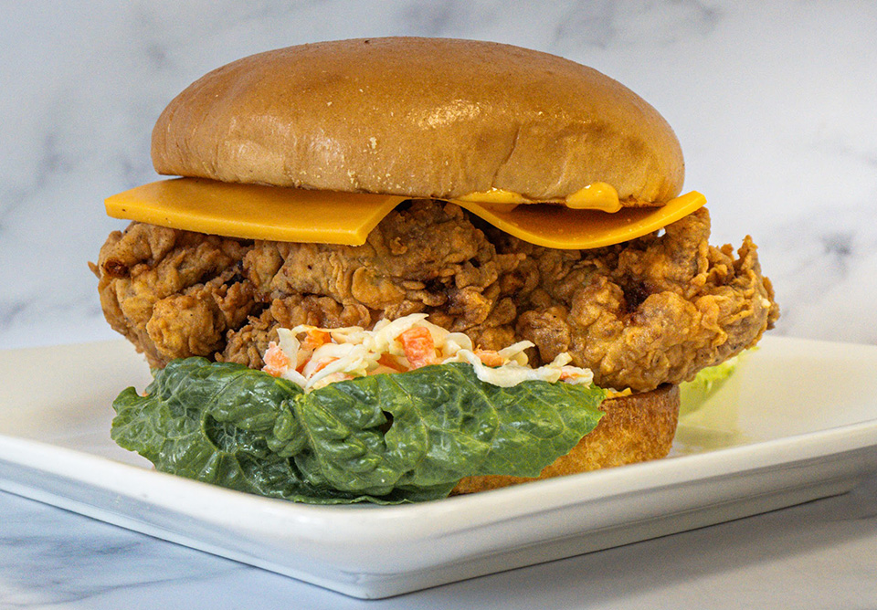 Thinly sliced chicken shawarma served in a soft bun with our creamy special sauce, melted cheddar cheese, and cucumber pickles. Hot sauce upon request.